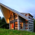 La Cornette Country House is a country house open to the pastoral landscape that surrounds it. Designed by Yiacouvakis Hamelin Architectes and located in Cleveland, Quebec in Canada, the house (3,000 sq ft) is designed to accommodate two families. The main attraction of the house is its south gable that looks like a nun’s cornet wimple. La Cornette Country House offers a resting place for all guests in a series of bedrooms and unusual sleeping areas.